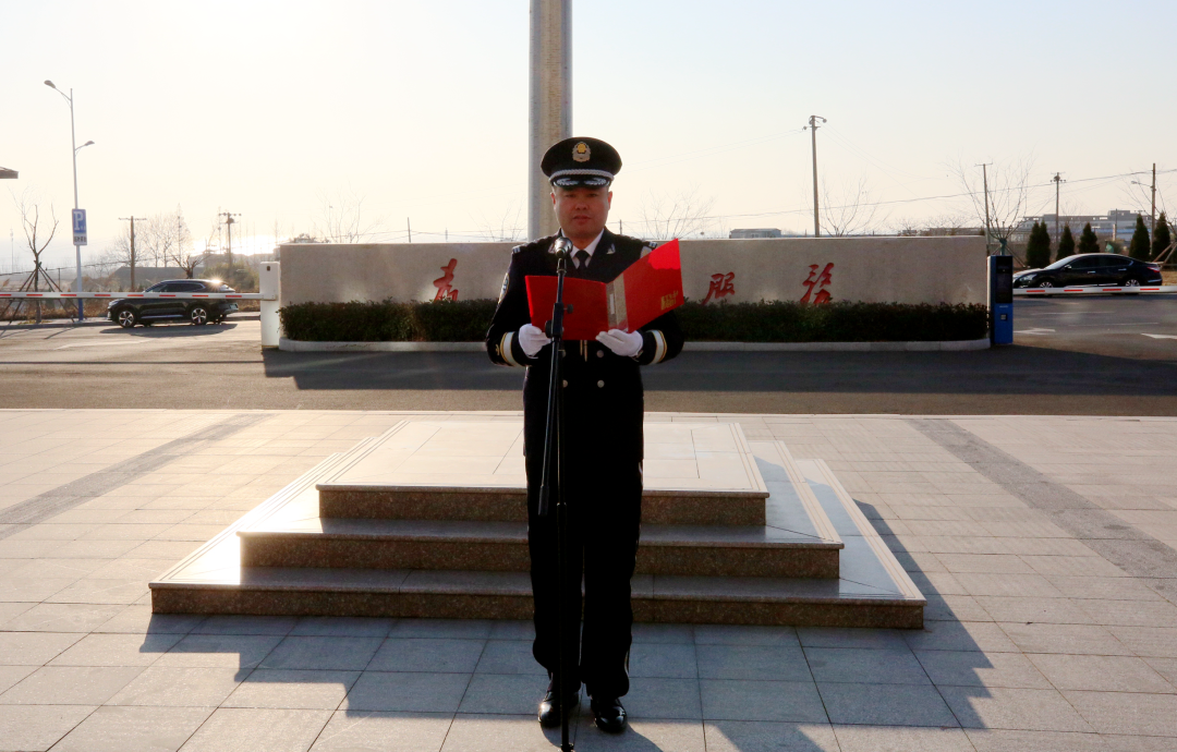 1月10日上午,分局举行升警旗暨重温人民警察誓词仪式,在警旗下汲取奋进力量,忠实履行好新时代职责使命。分局党委书记、局长孙磊出席仪式并讲话,分局党委委员、交警大队及各科所队室主要负责同志,除值班备勤外全体民辅警参加仪式。