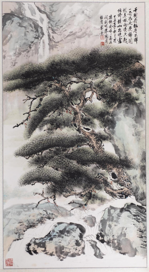 作为“岁寒三作为“岁寒三友”之一的古松,自古以来,先哲和文人墨客都对它情有独钟,他们诗以咏松,文以记松,歌以赞松,画以绘松,以松喻人,以松言志,以松自勉,以松抒怀。在千百年的文化演变中,造就了我国独特而深厚的松文化,而带有松树的山水画也成为备受人们青睐的作品题材之一。