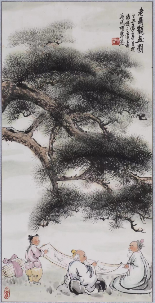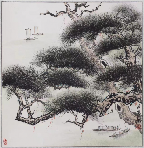 徜徉于山水国画的长廊,松树在画中是随处可见的。松树的种类繁多,形态也千差万别,点缀于山水画中,能够提高山水画的美感和层次感。带有松树的山水画,更是源远流长,涵盖了丰富的人文寓意与人文情怀,以下从当代艺术家刘明华老师的古松树绘画中,品赏山水情怀,以及山水画中古松的人文寓意与情怀。友”之一的古松,自古以来,先哲和文人墨客都对它情有独钟,他们诗以咏松,文以记松,歌以赞松,画以绘松,以松喻人,以松言志,以松自勉,以松抒怀。在千百年的文化演变中,造就了我国独特而深厚的松文化,而带有松树的山水画也成为备受人们青睐的作品题材之一。
