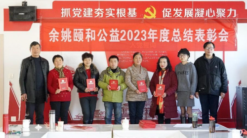 余姚市颐和公益服务中心2023年度总结表彰会召开,受表彰的15位志愿者和志愿者代表参加了此次总结表彰会,中心全体理事和监事参加本次活动。