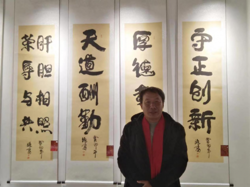 武安市青年学者、磁山文化研究专家张海江于2023年光荣加入了中国农工民主党。作为一名新党员,他积极履行监督职责,充分发挥好农工党的作用,为武安市的民主政治建设做出贡献。他潜心创作的“肝胆相照、荣辱与共”“守正创新”“天道酬勤”“厚德载物”“笃行致远”5副“藤书”书法艺术作品入选并展出,与各地市书法家交流创作。其作品蕴意深厚,整体渗透着中华民族的特色,富含丰富的文化底蕴,灵动的创造性思维贯穿始终,独具丰富而又内涵的自家风格,表现出较强的功力与不拘成法运用自如的能力,达到了一个艺术家应有的水平。