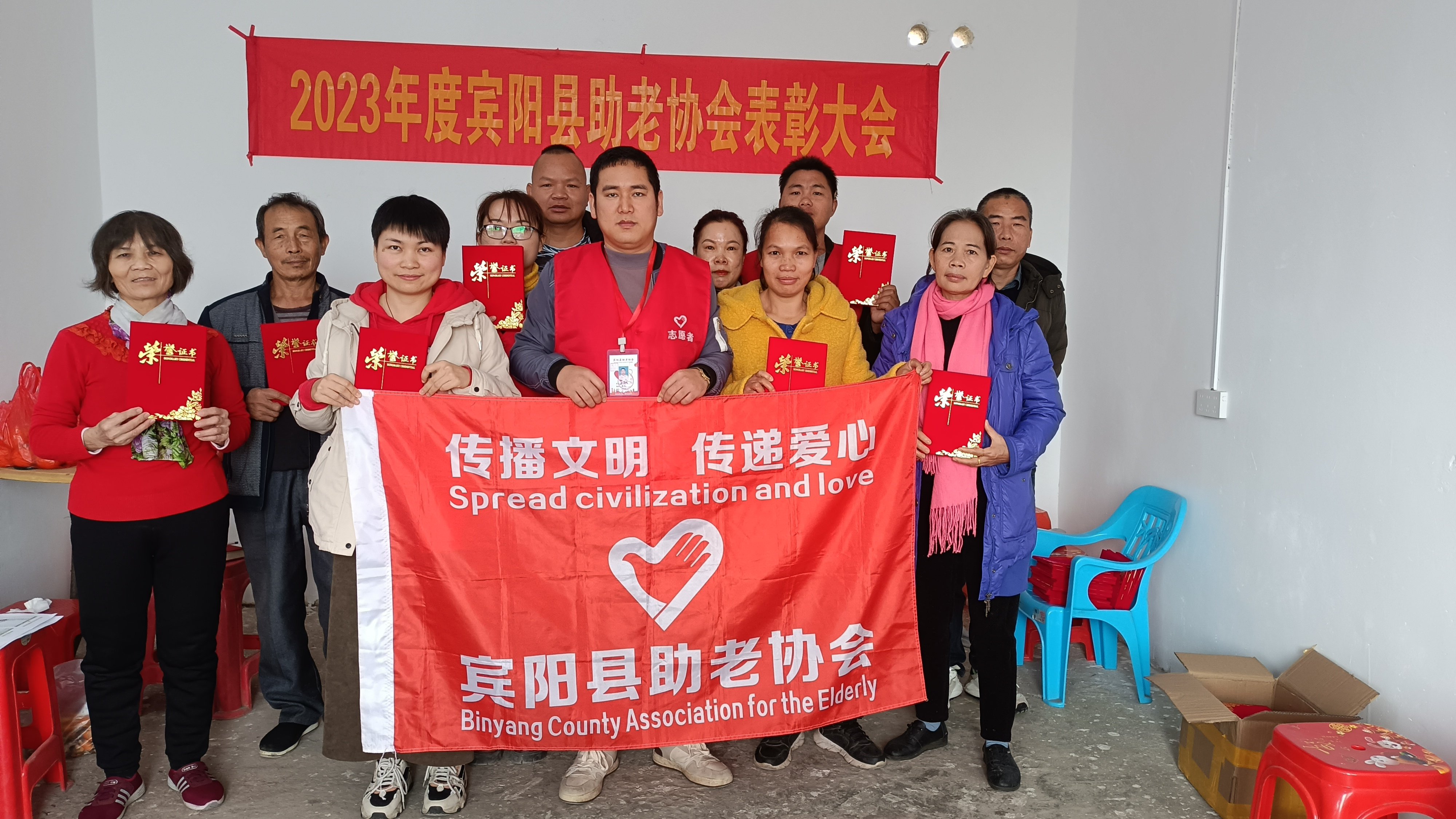 2024年1月7日宾阳县助老协会在宾阳县新桥镇大庄村委石砍村57号102室,举办2023年度宾阳县助老协会表彰大会暨年度总结会议。