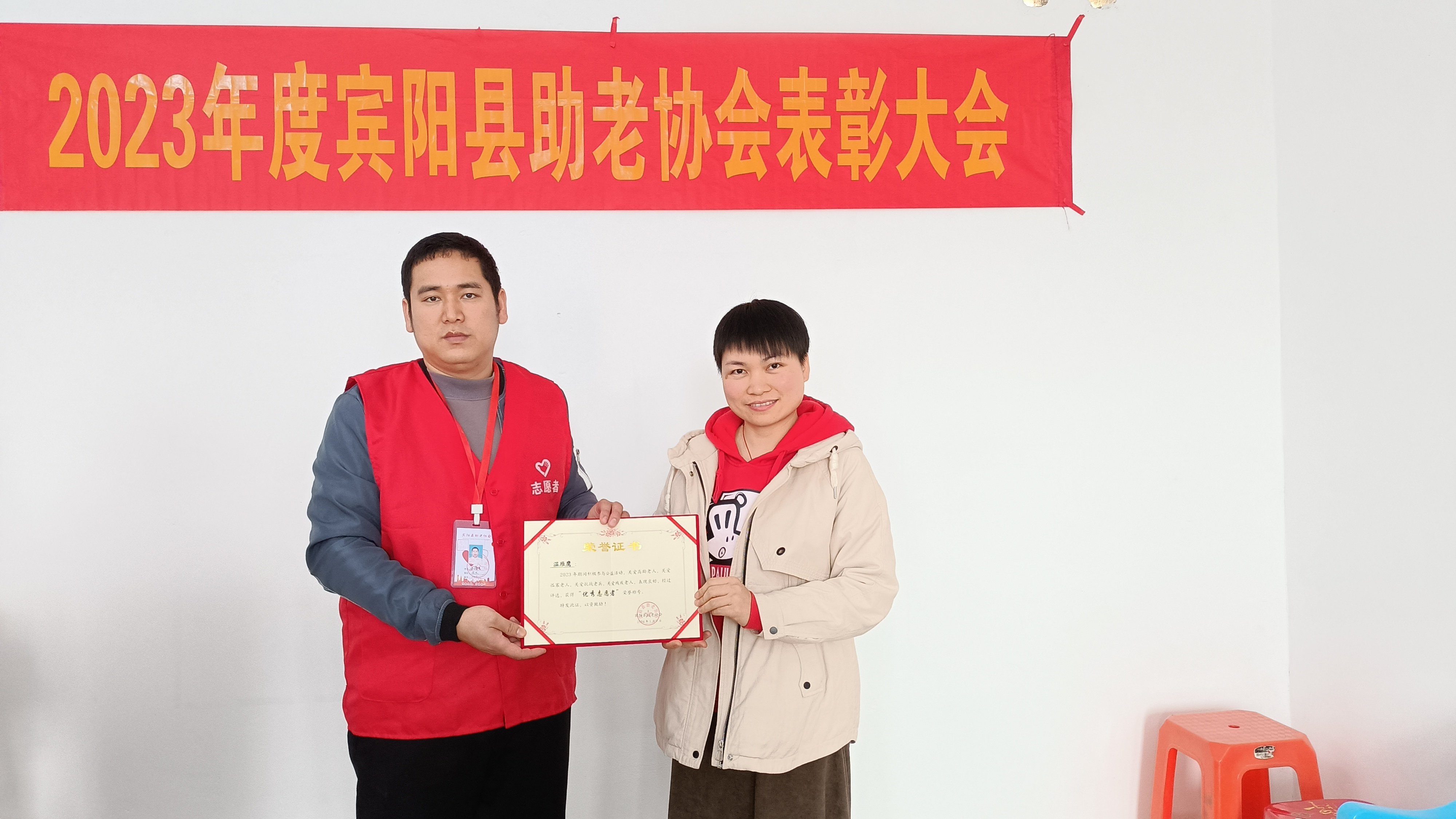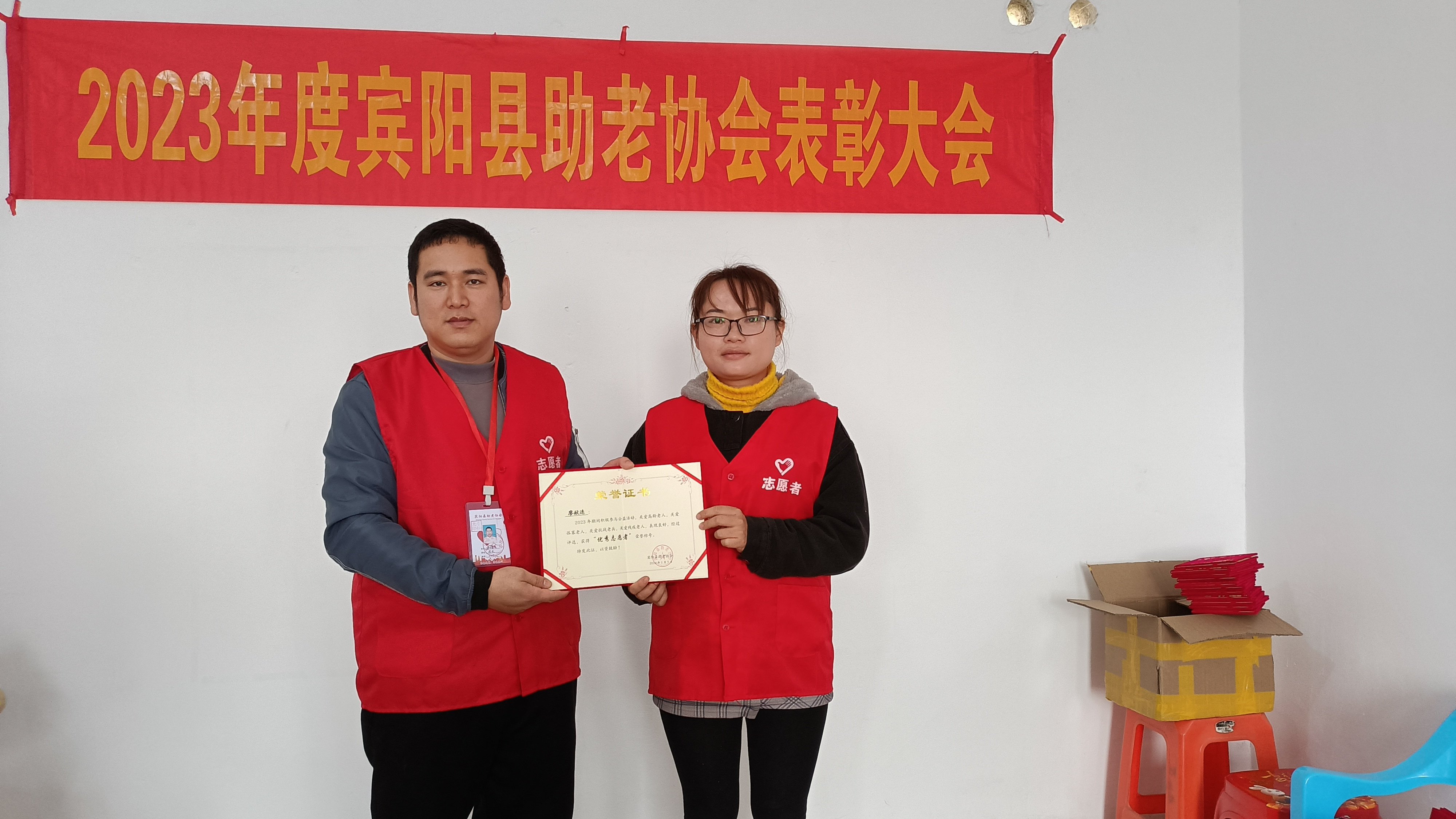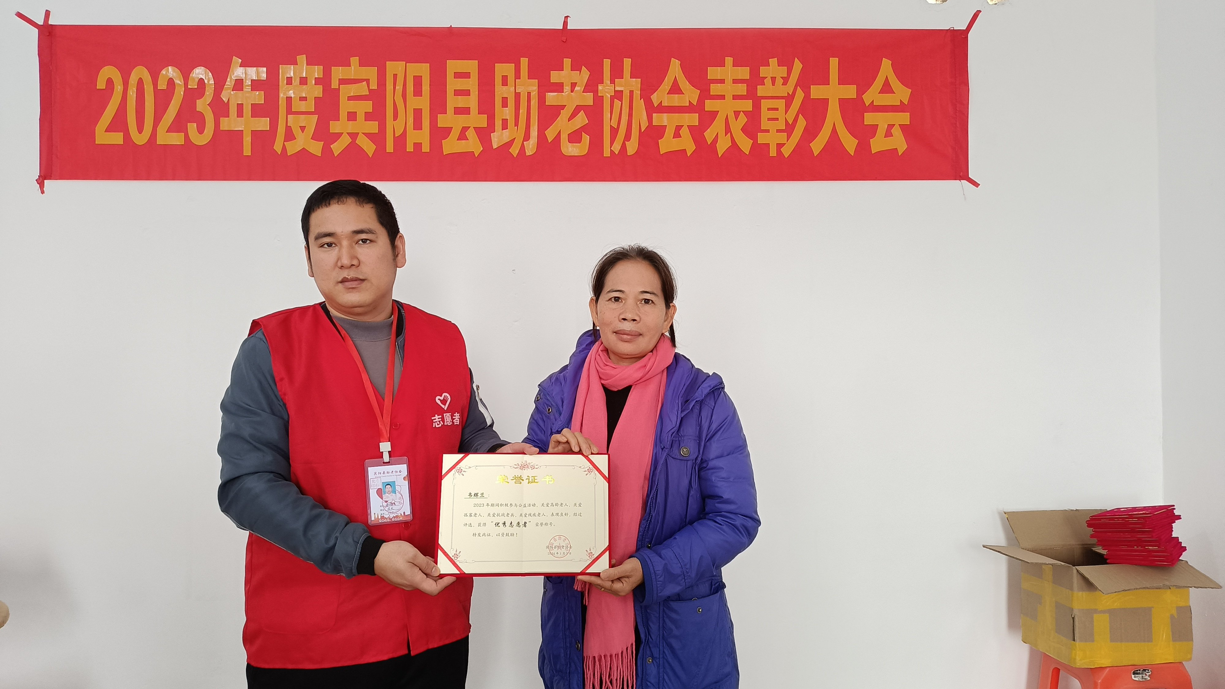 宾阳县助老协会为了鼓励更多爱心人士加入关爱高龄老人,为了鼓励积极参加公益活动,关爱高龄老人,关爱孤寡老人,关爱特殊群体老人的志愿者,通过多次讨论选举,获得优秀志愿者名单:李扬光,李生海,李生凤,李俊宏,温雁鹰,莫翠兰,方玉胜,李中兴,韦小玲,韦方芳,方来昭,林活文 ,吴才英 , 施秀平,覃才英, 林健耀 ,黄吉兰,唐其周 ,林永善 ,林健强, 陈立清, 覃淑香, 林月英, 封安皓,韦凤,吴勇安,陈丽纯,游茵,韦辉兰,张小枝,马丽英,卢镇,廖献连,刘丽雪,廖欢,苏柳,潘丽青,林相全,谭春连,梁燕新,王东明。(此名单已提前报给业务主管单位宾阳县民政局)。授予爱心单位给:广西民众数字科技有限公司宾阳县服务中心,广西南宁市韵艾无疆医药科技有限公司。