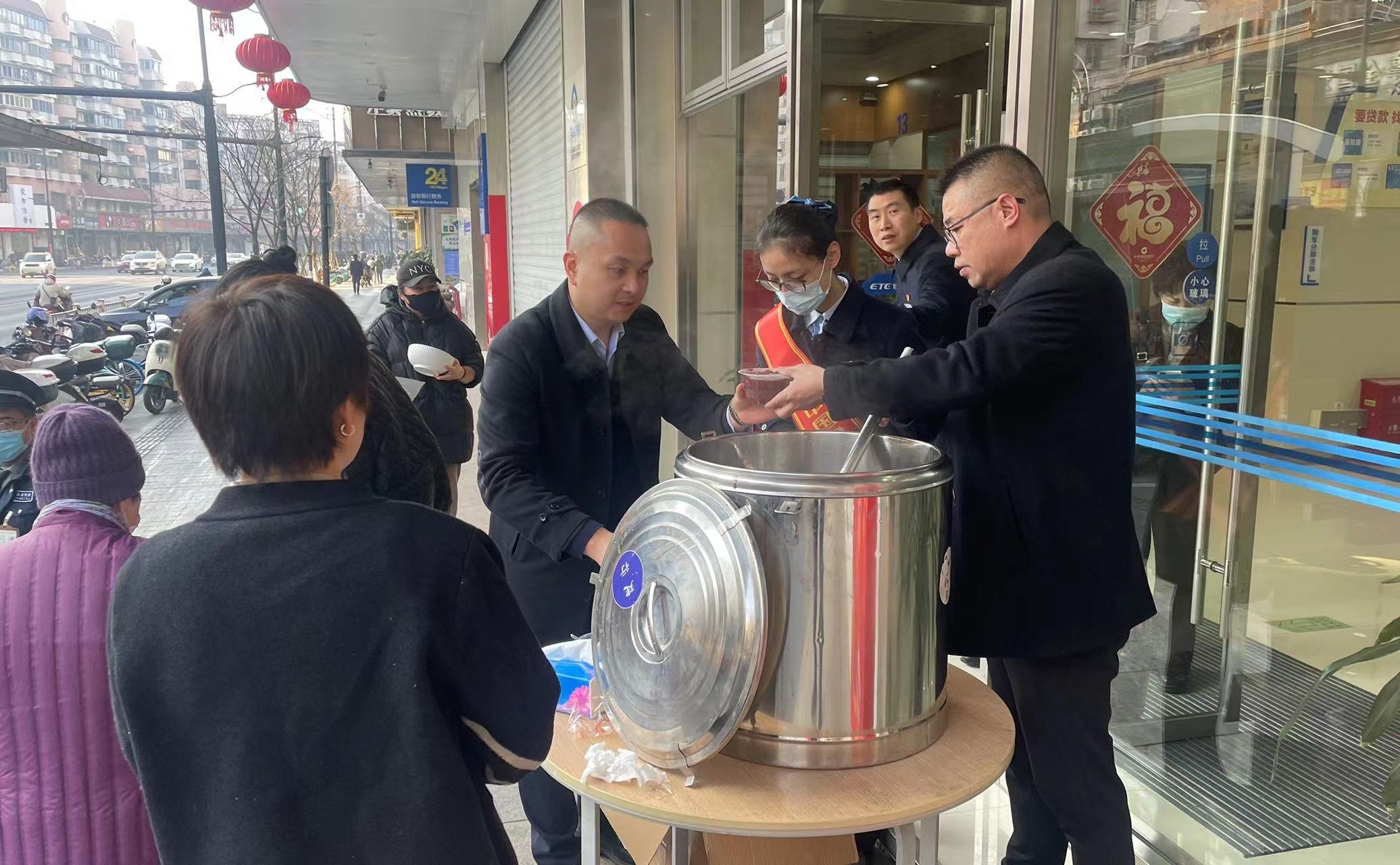 腊八节当天早晨,建行温州分行鹿城支行联合温州慈善机构开展“浓情腊八节 施粥暖人心”活动,支行本级和辖属网点均精心准备了美味的腊八粥。鹿城支行党委书记、行长王永军与行长室成员带头亲手为客户、员工等辛勤的劳动人民送上温暖的八宝粥。同时,建行温州分行鹿城支行辖属二级支行均设置施粥点,将一份份免费爱心腊八粥送给附近储户、前来办理业务的客户、环卫工人、快递员等人员手中,用心感恩回馈客户。