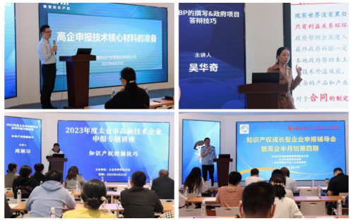 回顾2023年的发展历程,梦工厂紧跟市场发展的节奏,积极调整思路,不断在前进的道路上发展、壮大,立足技能培训,强化精准赋能,加快整体产业升级,在太仓市高新技术企业申报专题讲座上先后发表以技术核心材料准备、知识产权挖掘技巧为主题的专题演讲;先后开展知识产权成长型企业申报辅导会暨高企半月班、知识产权“入园惠企”赋能企业高质量发展活动暨高企半月班。国家技术转移人才培养基地2023年第九期技术经理人培训班等;帮助各级政府单位提升答辩技巧,并帮企业完成BP撰写,助力企业从快速发展转向高质量发展。