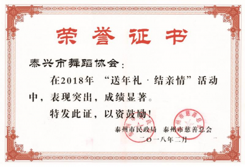 “群众想看什么,我们就演什么。”多年来,泰兴市舞蹈协会通过招投标等方式,先后执行了“江苏省公益慰问演出社区行”项目、“江苏省孝满天下爱老志愿行”项目、“江苏省福泽夕阳爱老志愿行”项目、“泰州市福泽夕阳-健身舞蹈社区行”项目、“江苏省法润夕阳-爱老法律服务社区行”项目以及泰兴市相关尊老敬老服务项目。为全市老年朋友在文化服务、精神慰藉、心里咨询、健身指导、法律宣传等方面演出、教学、指导服务了五百多场次,惠及群众十多万人次;用群众听得懂、喜欢听、愿意学的语言服务泰兴大众。坚持文化引领,情暖人心,所到之处,得到了广大人民群众热烈的欢迎。 “疫”线有我 担当奉献