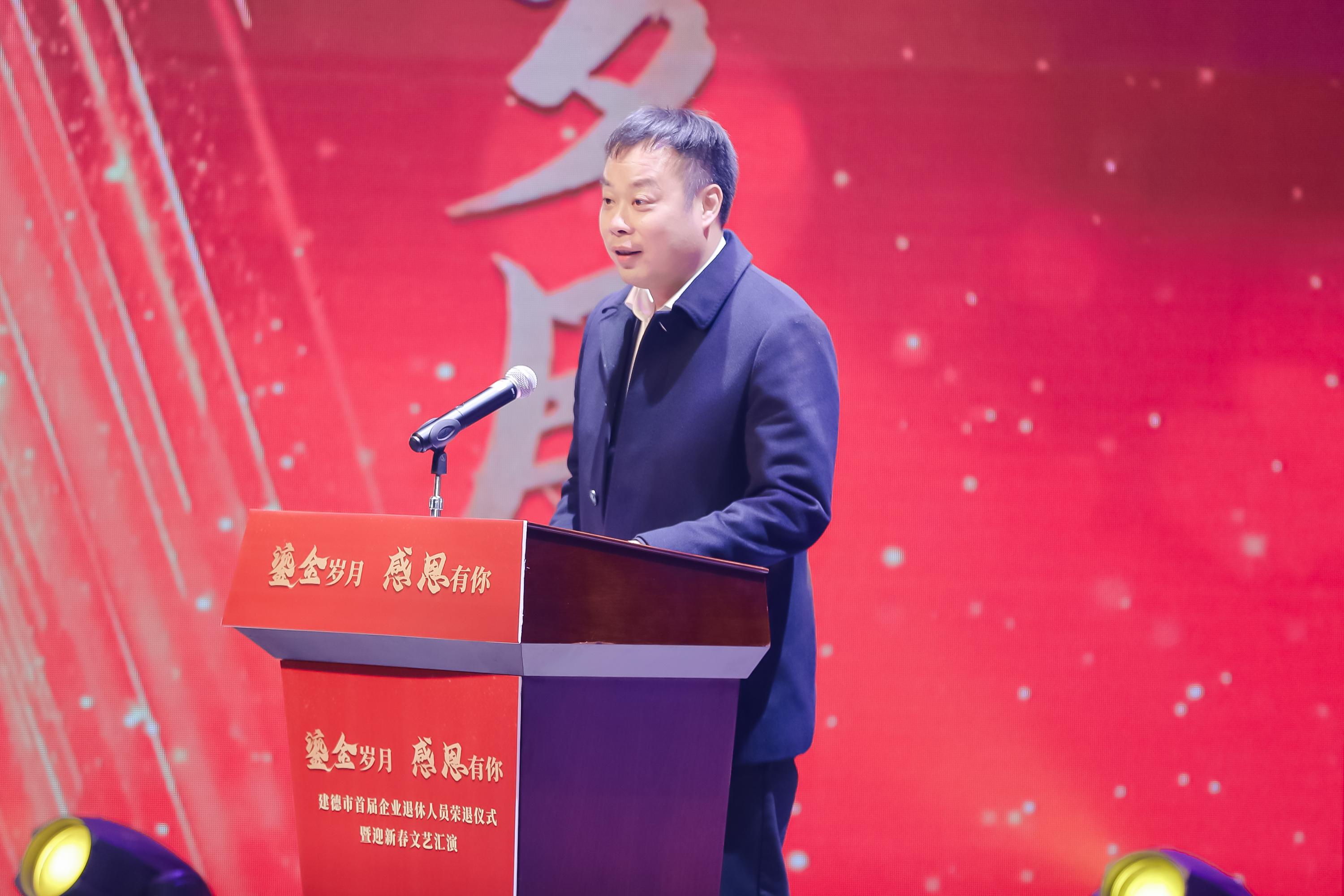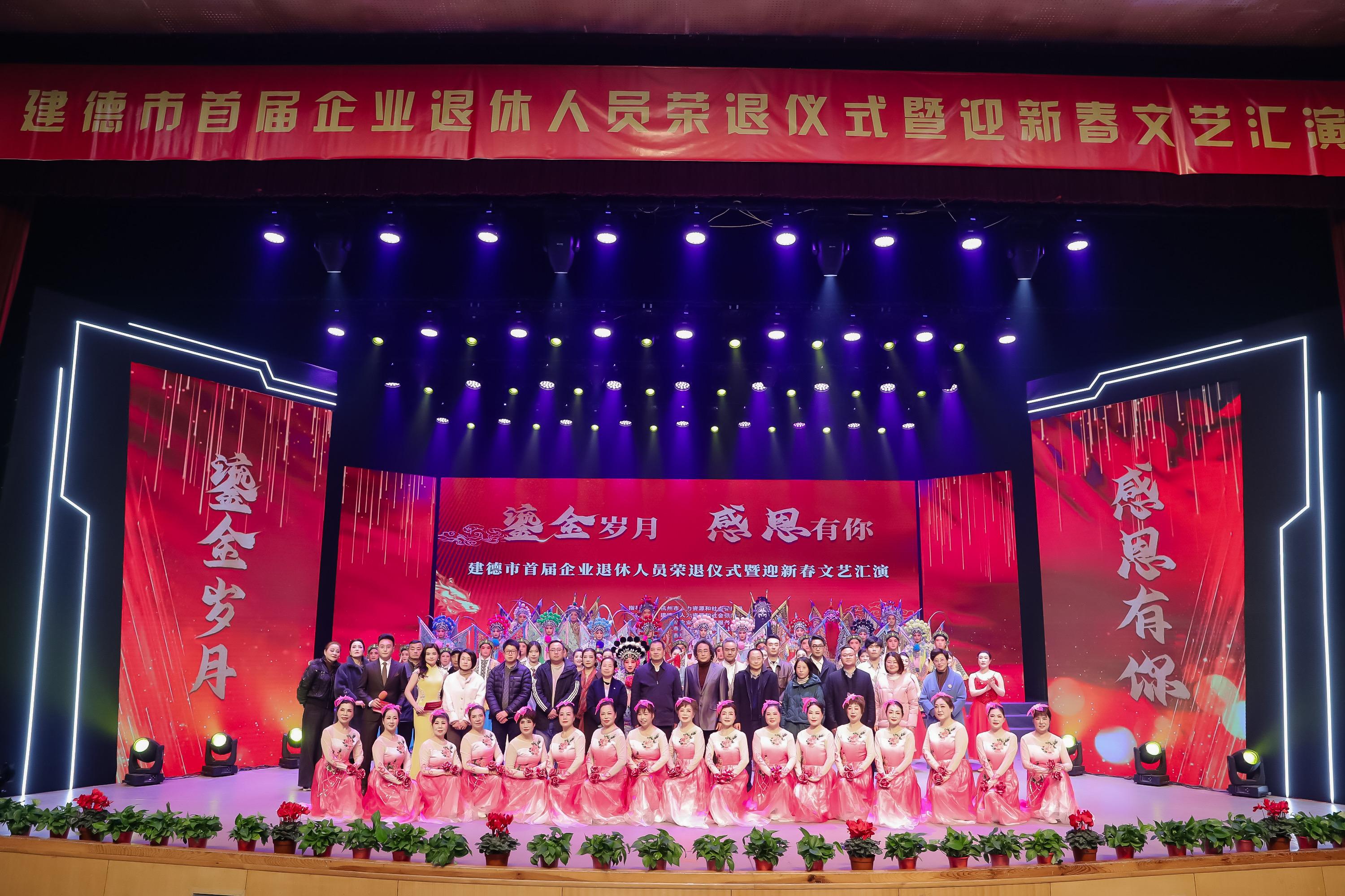 1月18日下午,以“鎏金岁月 感恩有你”为主题的建德市首届企业退休人员荣退仪式暨迎新春文艺汇演在建德市文化中心成功举办。来自全市16个乡镇街道的企业退休人员代表、企业代表等200余人欢聚一堂,共同见证了这一温馨而感人的时刻。 ![]()