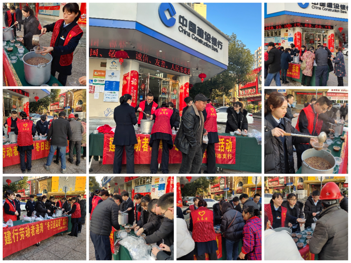 年年岁岁,今又腊八。“喝腊八粥”是腊八节的习俗,一碗暖暖的腊八粥,不仅是一种过节的仪式感,更是一次温暖的传递!今年的腊八节,有这样一群人在建行温州分行乐清柳市支行的大门口传递一碗腊八粥,温暖你我他。一碗热气腾腾的爱心粥,不仅拉近了人与人之间的距离,更彰显了无私奉献的精神,温暖了大家。请看现场直击,爱心粥汇聚暖流。 “粥熬好了,大伙儿趁热喝!”志愿们把热气腾腾的腊八粥端给前来排队的环卫工人、空巢老人等各类弱势群体,大家吃着香甜的腊八粥,脸上露出幸福的笑容。传统习俗的喜庆和温暖,正在通过满怀正能量的方式传递进大众的生活和心灵。建行的志愿者们表示,环卫工人为了环境卫生在户外工作很辛苦,感谢环卫工人为美化城市环境付出的辛勤汗水,这碗粥是我们的心意,希望环卫工人都能过一个温暖的腊八节。