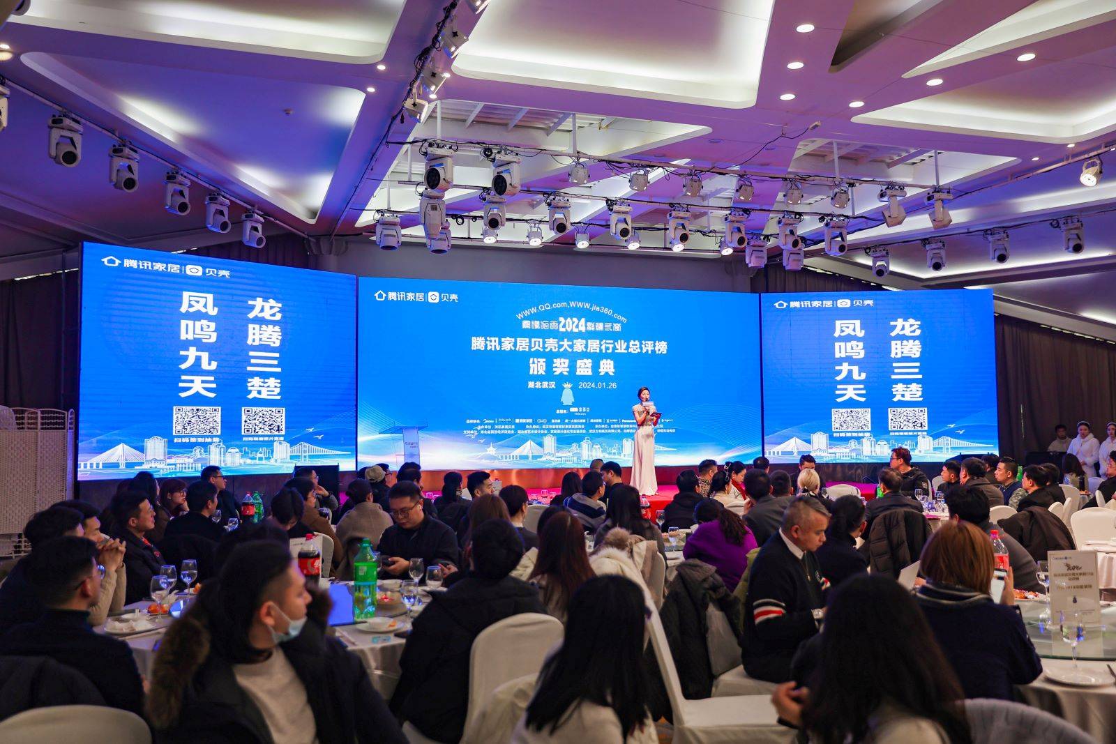 1月26号下午,由索菲亚整家定制总冠名,腾讯家居贝壳主办,美的、COLMO、顾家家居、OXO智能卫浴、简一大理石瓷砖、司米橱柜、忠信博艺建设集团、松下电器、公牛集团、方太厨电、劲牌酒业联合冠名,武汉装饰建材家居发展商会协办、楚建装科技承办的腾讯家居贝壳大家居行业总评榜颁奖盛典在武汉东湖印象会议中心召开。