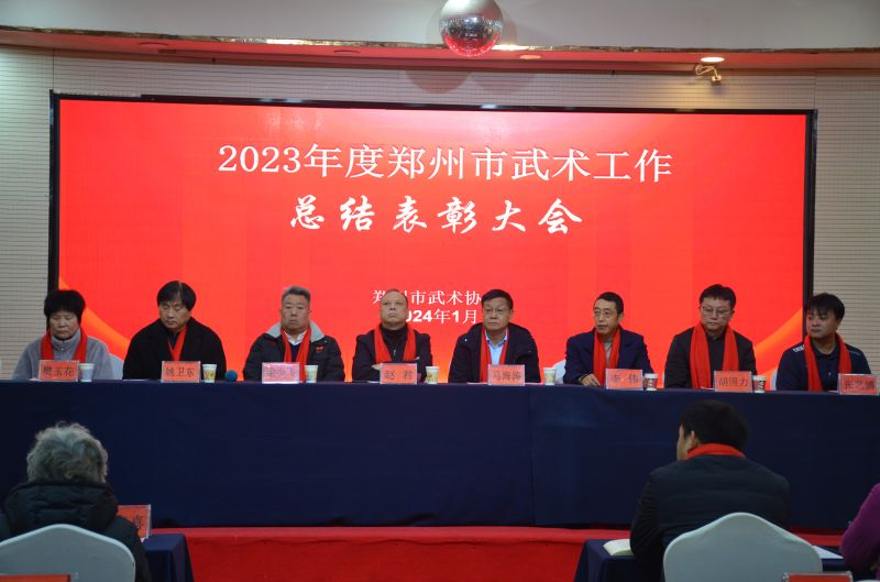 2024年1月27日,郑州市武术协会2023年郑州市武术工作总结表彰大会召开,郑州市体育局副局长赵君、郑州市武术协会原秘书长梁少飞和李伟以及来自各县市区武协负责人、荣获先进单位、先进馆校代表以及先进工作者参加了总结表彰大会。