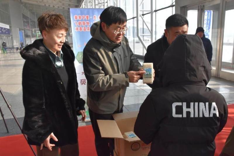 1月27日为了助力黑龙江旅游的发展,泰来县宁姜乡近日联合当地爱心企业彭员外家庭农场在哈尔滨旅游景点举行了一场特殊的活动,向南方游客发放了一万余斤有机大米。宁姜乡乡长郑义和乡党委副书记高永军亲自出席了活动,并向游客介绍了泰来县的风土人情,以及希望南方游客能够到泰来县游玩。