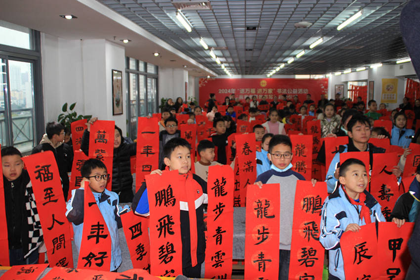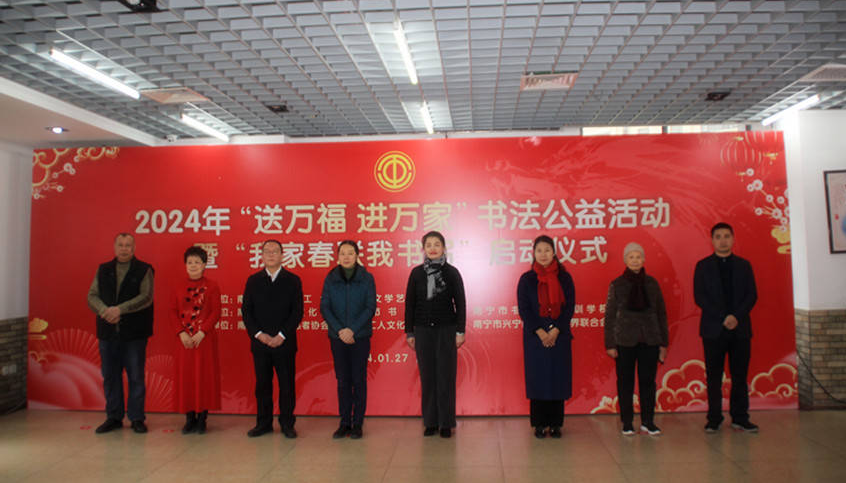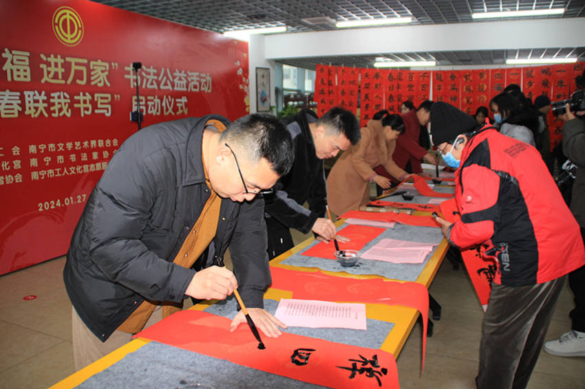 在新春佳节即将来临之际,为大力弘扬中华优秀传统文化,丰富南宁市广大市民、职工群众、少年儿童的精神文化生活,1月27日,由南宁市总工会、南宁市文学艺术界联合会主办的2024 年“送万福、进万家”书法公益活动暨“我家春联我书写”启动仪式在南宁市工人文化宫隆重开启。