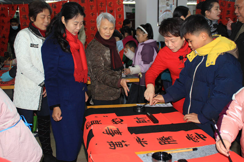 活动现场,南宁市书法家协会的书法家们和“书法成长课堂”的孩子们同台挥毫书写春联,为广大职工群众和小朋友们写春联、送“福”字,传达新年的祝福与问候,让广大市民在寒冷的冬日里感受到了传统文化的温暖和传承。