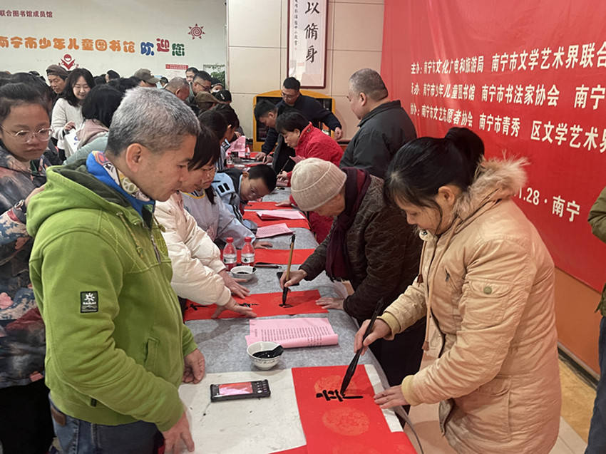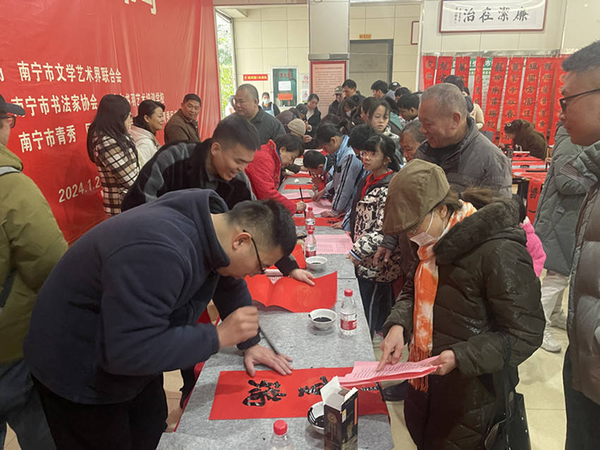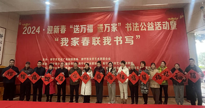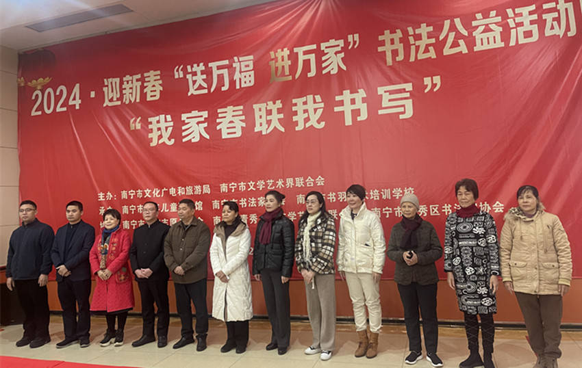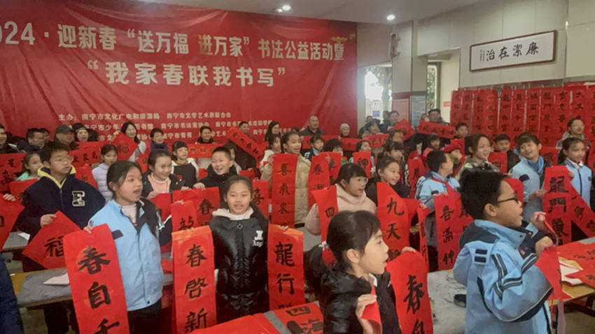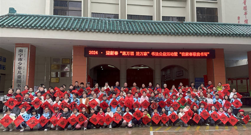 1月28日,由南宁市文化广电和旅游局、南宁市文联联合主办的2024年迎新春“送万福进万家”书法公益活动暨“我家春联我书写”在南宁市少年儿童图书馆盛大开幕,以庆祝新年的到来,同时也为南宁市的广大群众和少年儿童带来丰富的新春文化盛宴。