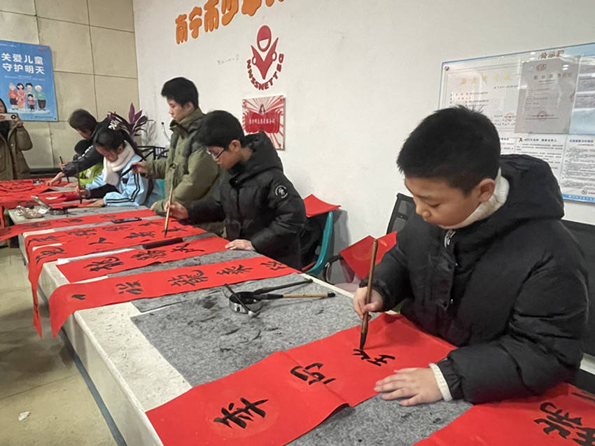 南宁市少年儿童图书馆书记刘斌在表示:“文化惠民送福气,挥毫泼墨写春联。我们希望通过这次活动,让孩子们感受到中国优秀传统文化的魅力,同时也鼓励大家用带着墨香的春联,送上了充满年味的文化礼物。”