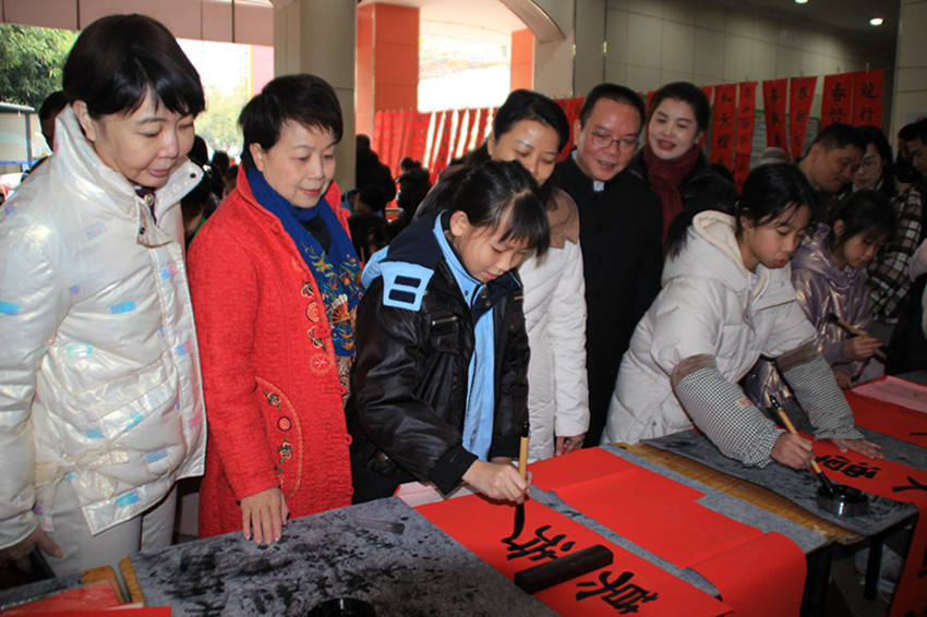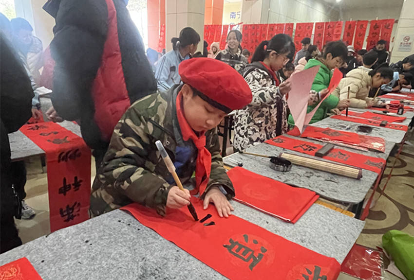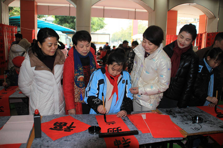 “我家春联我书写”是此次活动的亮点之一。这是南宁市文联、南宁市书法家协会积极倡导和推动的一项少儿文化传承的活动,已经开展了10多年。此次参加活动的100名孩子全部来“书法成长课堂”的学生。作为南宁市重点培育的少儿书法公益课堂,培养了一大批小小“书法家”,他们他们书写的一对对春联,成为了当天最靓丽的风景。