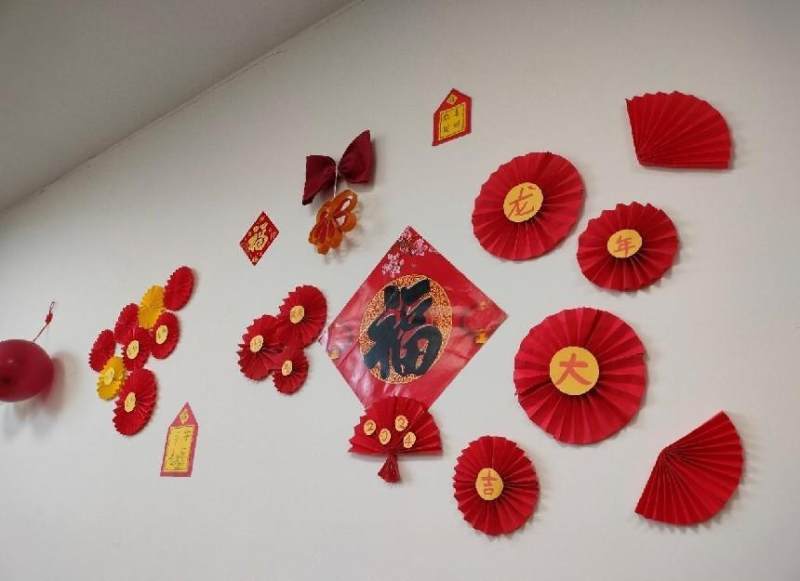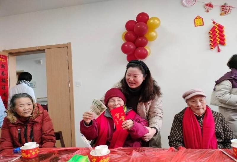 康养之家的工作人员早早地就开始打扫卫生、给老人们换新衣服、贴对联、给老人们送“福”,个个忙得热火朝天。