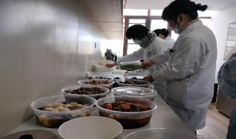 食堂后厨的师傅们择菜、洗菜、配菜、烹调……,为老人和员工们精心地准备着年夜饭。工作人员根据大多数老人的喜好,认真仔细研究,敲定食谱,给老人们准备了十六菜两汤,还准备了暖心饮品姜汁可乐。