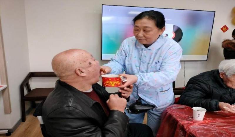 老人们一边品尝美食,一边分享着彼此的故事和祝福。对于那些卧床不能行动的老人,医生、护士和护理员们也特意将饭菜端到他们的床前,一口一口喂到老人口里。