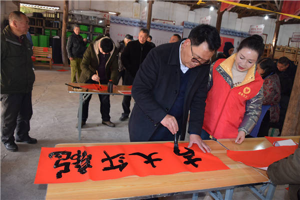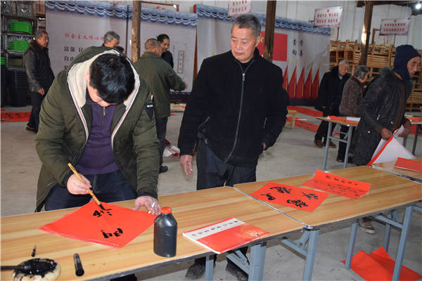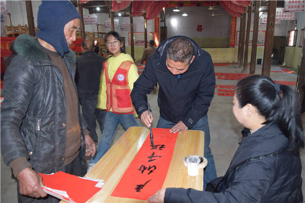 "春节是我们中华民族非常重要的传统节日,春联也有着悠久的历史和深厚的文化内涵,成为中华民族独特的传统文化习俗。"春香书画院院长、市硬协县办事处执行秘书长楼子洪手里拿着刚写好的一副春联,对活动现场的村民叙说道。详细讲解了贴春联的工具和方法,令大家颇有受获。