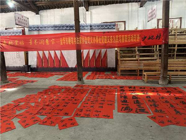 1月31日上午,永远听党话-笔墨润万家——浙江省金华市硬笔书法家协会武义办事处党建义务为民写春联活动,走进武义县新宅镇少妃村,与村民共迎新春佳节。