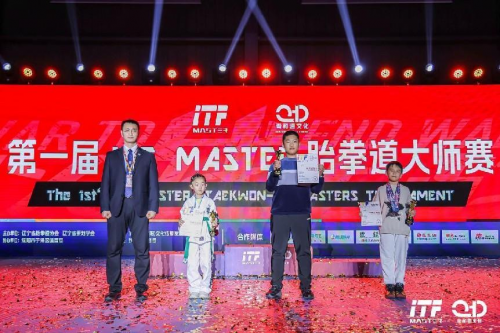 出席本次闭幕式的领导有辽宁省策划学会常务会长、辽宁省跆拳道协会ITF跆拳道委员会会长刘宪军,ITF跆拳道委员会副会长、第一届ITF MASTER跆拳道大师赛裁判长王长志,ITF跆拳道委员会副会长、第一届ITF MASTER跆拳道大师赛技术代表杨裕博,ITF跆拳道委员会秘书长郎思瑶,ITF跆拳道委员会竞赛部部长、第一届ITF MASTER跆拳道大师赛竞委会主任李海强,ITF跆拳道委员会竞赛部主管、第一届ITF MASTER跆拳道大师赛检录长关泽群。 来自全国各地的22支道馆参加了此次比赛,他们分别是:大连天同武道、天津东道跆拳道馆、牡丹江晟杰跆拳道馆、沈阳炼心塾跆拳道馆、大连归真悟道馆、太原王冠国际跆拳道、营口武生跆拳道、安徽从戎国际跆拳道馆、岫岩弘武跆拳道馆、沈阳诚武馆、天津武山国际道馆、沈阳铭豪跆拳道馆、内蒙古鲲极国际跆拳道、沈阳扬承跆拳道馆、铁岭圣德拳道馆、长春聖伽ITF自由搏击跆拳道馆、延边志统武道、哈尔滨龙腾跆拳道馆、大连合武跆拳道、海城前程武道、沈阳重华跆拳道馆、上海新罗跆拳道馆。闭幕式上,第一届ITF MASTER跆拳道大师赛组委会对各代表队的优秀成绩进行了表彰,获奖名单如下: 优秀运动员奖-大连归真悟道馆王子怡、大连天同跆拳道Ethan Kane Asher Botter、沈阳诚武馆雍佳曈