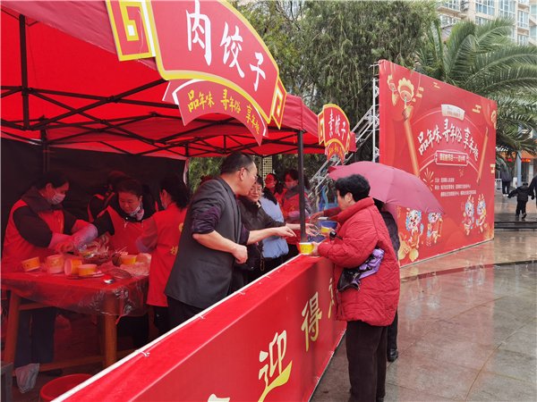 2月2日一早,建行平阳支行志愿者来到昆阳镇湖心亭广场,和社区居民一起动手搓汤圆、包饺子,开展“品年味 享幸福”小年