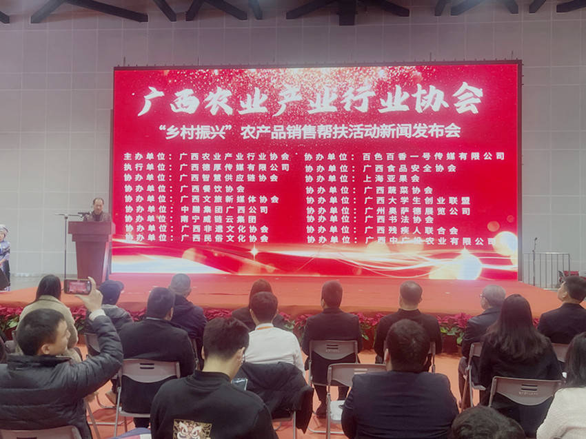 2月1日,广西农业产业行业协会在南宁国际会展中心新春年货购物节暨迎春花市展馆成功举办了“乡村振兴”农产品销售帮扶活动新闻发布会。来自各商协会及参展企业代表、现场观众共200多人参加了此次活动。