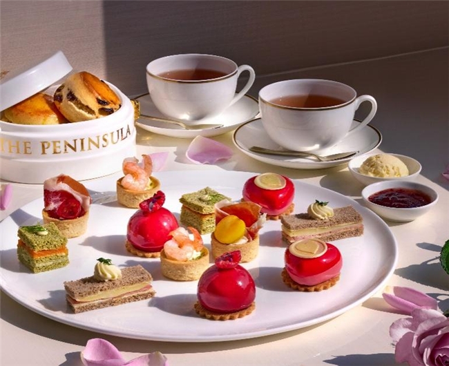 新春蛋糕系列 半岛精品店也为情人节呈献一系列美点和限定下午茶套餐。覆盆子慕丝糕点,酸甜丰润的覆盆子慕丝,每一口都带出浆果的幸福滋味;开心果草莓挞浓郁香甜,精彩味美;节日下午茶包含精致的咸甜美点包括巴马火腿蕃茄奶酪挞、鲜虾芦笋乳蛋挞及烟熏三文鱼青瓜三文治。 除了著名半岛英式司康外,还有精致的甜心香草草莓慕丝糕点和覆盆子果酱慕丝糕点。