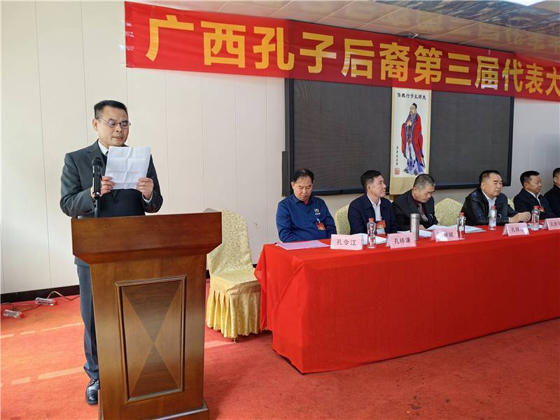 近日,为继承与弘扬中华优秀传统文化,纪念中国古代著名的思想家、教育家、政治家孔子先祖,广西孔子后裔近200人聚会龙城,在柳州市麒麟阁大酒店隆重召开第三届宗亲代表大会。会议由中华孔子学会孔子后裔儒学促进专业委员会理事孔繁明主持。
