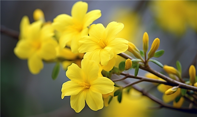 迎春花属于木犀科落叶灌木植物。花色多为浅黄,即为2024年度东方主题色——“缃叶黄”。唐代诗人白居易在《玩迎春花赠杨郎中》一诗中曾这样描述她的花色:“金英翠萼带春寒,黄色花中有几般。” 因为迎春花开在冬末,冬寒未褪,因此被和梅花、水仙、山茶花并称“岁寒四君子”。迎春花也因为这种耐寒的品质受到历代诗人的青睐。北宋名相韩琦曾在诗作《迎春花》中称赞:覆阑纤弱绿条长,带雪冲寒折嫩黄。 迎得春来非自足,百花千卉共芬芳。 同时代的诗人韦骧则感慨“迎春”并非浪得虚名: “欺梅压柳肯相然,佳号迎春岂浪传。” 明朝诗人范景文也在《仲冬晦日仁常送迎春花至即邀共赏》中倾慕迎春花傲雪的气质: “当寒故暖将为雪,未腊迎春早放花。” 而在民间,迎春花不仅给山野百姓带来春天的信息,装点了他们的生活,而且还能入药医病:《本草纲目》中记载迎春花:“活血散瘀,消肿止痛。”迎春花泡茶具有消炎、利尿、改善微循环等功效。 迎春花“迎”来的立春是四季之始,“立,始建也,春气始而建立也。” 古人把春气上升,草木萌发的状态叫“青春”。 一年之计在于春,农人不敢负“立春”,负之则一年无收;吾人不敢负“青春”,负之则一生不立。 古人说春有四德,即:好生戒杀、涵容万物、劳作乐业、惜福感恩。这其实涵盖了农耕文明对自然和自我的认知,以及在这些认知的基础上建立起来的全部行为准则和道德规范。“四德”之说体现出中国人对春的崇敬和感念,并深怀这份崇敬与感念,去完成四季劳作,去追求幸福人生!