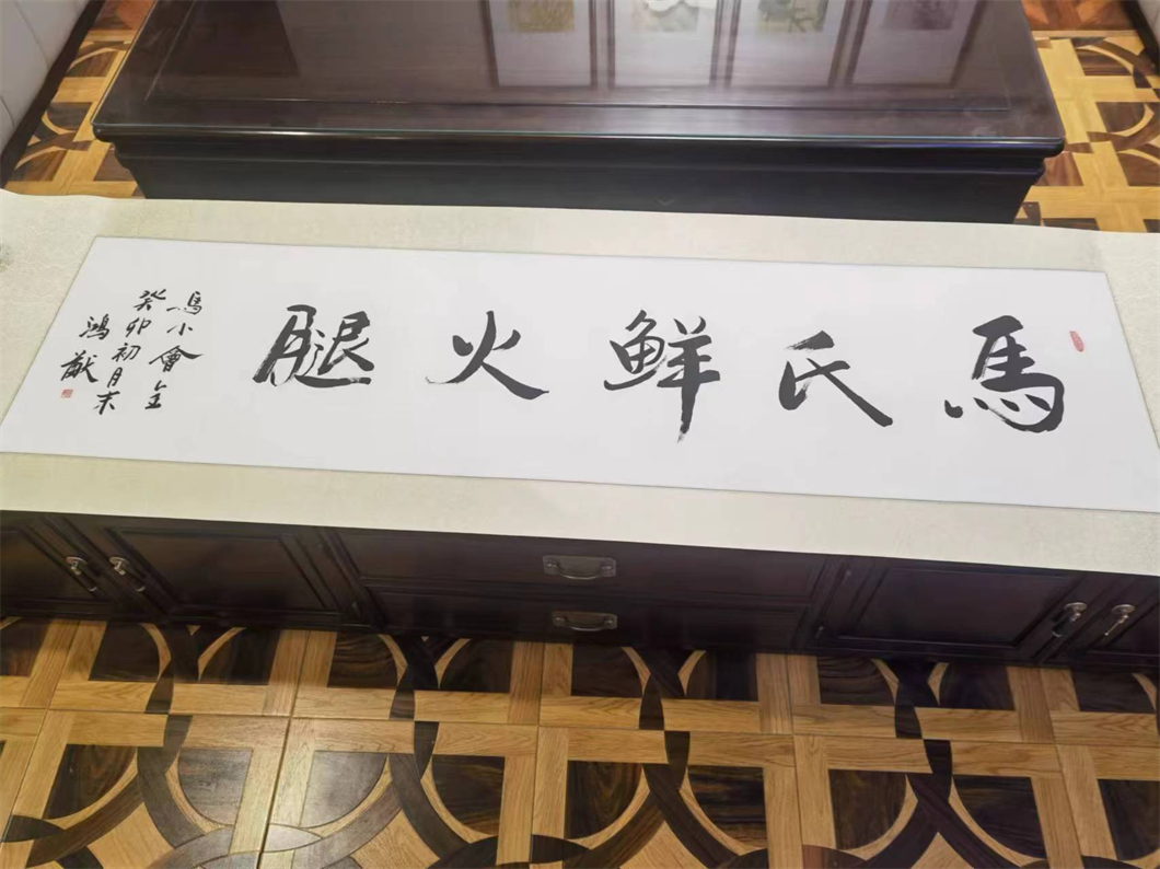 三.时代密码,美味历程再接力 在红木领域深耕半生的马红泉,深知创新是一个行业的灵魂,他的灵感源于许多方面,或是岁月带来的阅历,或是内心深处的积淀,更多的,是传统文化滋养,马红泉爱书画,挥毫泼墨间,风来笔自香,很少有人知道,马红泉与著名书法家席蓉蓉女士是至交好友,一个雕镂时光,一个文心雕龙,泼墨,品茶,风雅无需附庸,灵魂自然丰盈。慢于时代,以保有初心,窥见变化,方能不固步自封。建筑如此,书画如是,美食亦然,在吃的法则里,风味重于一切,一如在事业上的杀伐果决,手握祖先传承秘方的马红泉从来没有把自已束缚在一张食品清单上,他怀着对食物的理解,在不断的尝试中寻求着转化的灵感,也不断的将马氏鲜火腿的配方与制法去粗取精,以期精益求精。