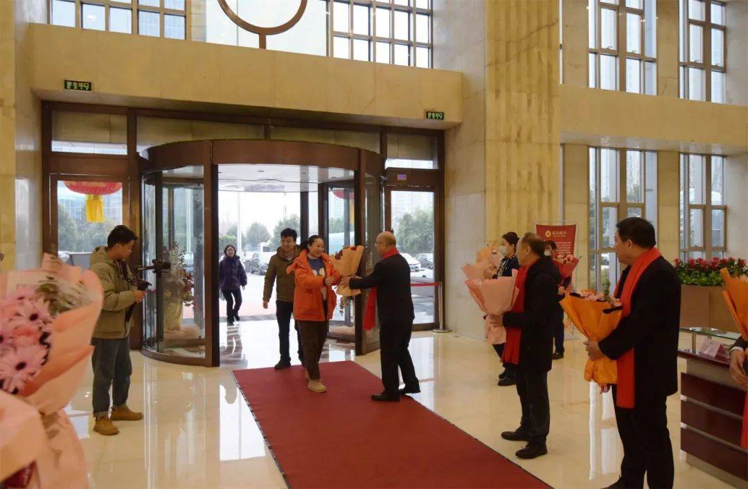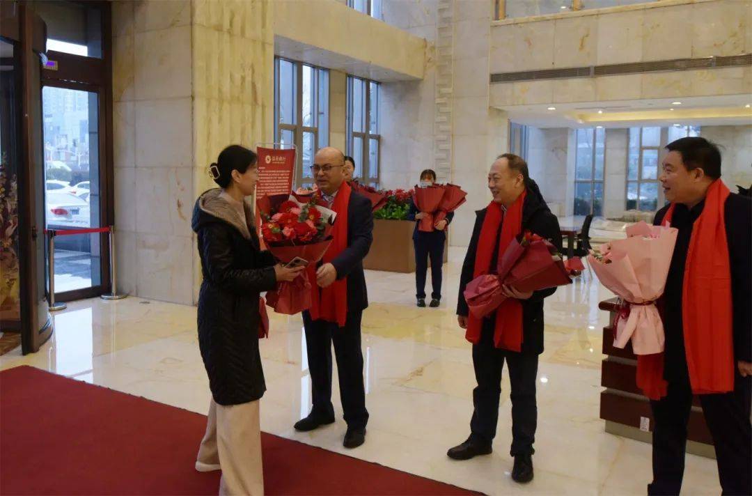 2月18日, 在新春的第一个工作日, 临商银行总行开展 “拜年送鲜花”活动。 一大早,党委书记刘成田 带领党委班子成员、高管 在总行一楼大厅门口, 手捧鲜花,面带微笑, 迎接每一位同事到来, 亲切地与大家握手, 送上新春的祝福。