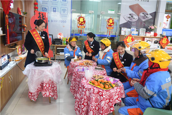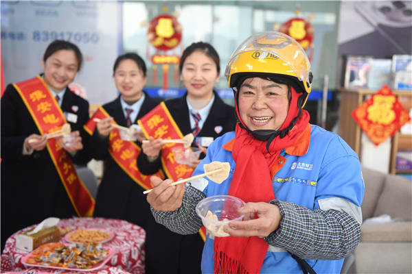 2月10日,农历龙年大年初一,中国电信江苏淮安分公司淮海路营业厅“爱心翼站”的爱心大使,为坚守岗位的环卫工人准备了热腾腾的饺子、汤圆,大家在欢声笑语中共度佳节。
