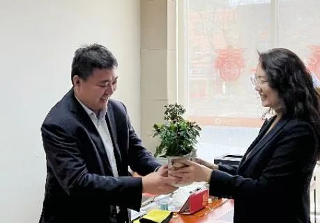 甲辰龙年正月初九,开工首日。高新区支行领导班子成员早早齐聚支行门口,为到岗员工逐一送上了龙年吉祥玩偶,并与员工拉家常、送祝福,向员工的辛勤付出表示肯定和衷心感谢。一个个活泼可爱的玩偶,代表着支行祝愿新的一年龙腾虎跃、再创佳绩的诚挚祝福。 莒南支行 开工送绿意,共启新篇章