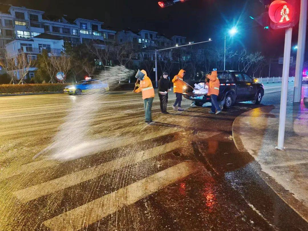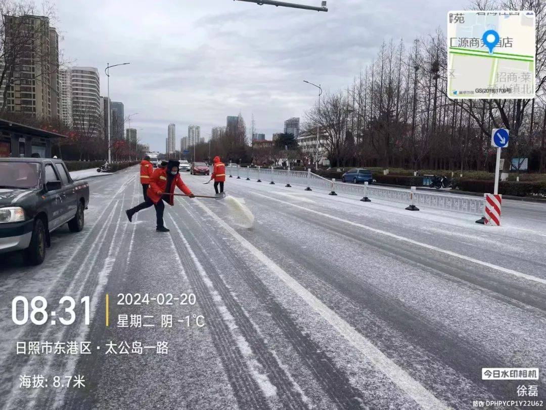 连日来,日照市迎来大范围雨雪天气,部分地区出现冻雨,给交通出行造成影响,山海天各部门单位以雪为令,以“动”制“冻”,全力以赴投入到清雪除冰战役中,确保即下即清,全力保障人民群众平安出行。 2月19日 夜间至次日凌晨 大范围的雨雪天气导致道路积雪和结冰,山海天相关部门迅速行动,全力开展破冰除冰工作,保障居民出行和交通畅通。