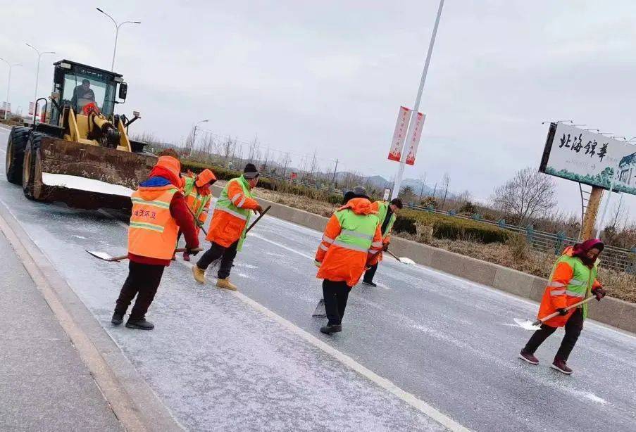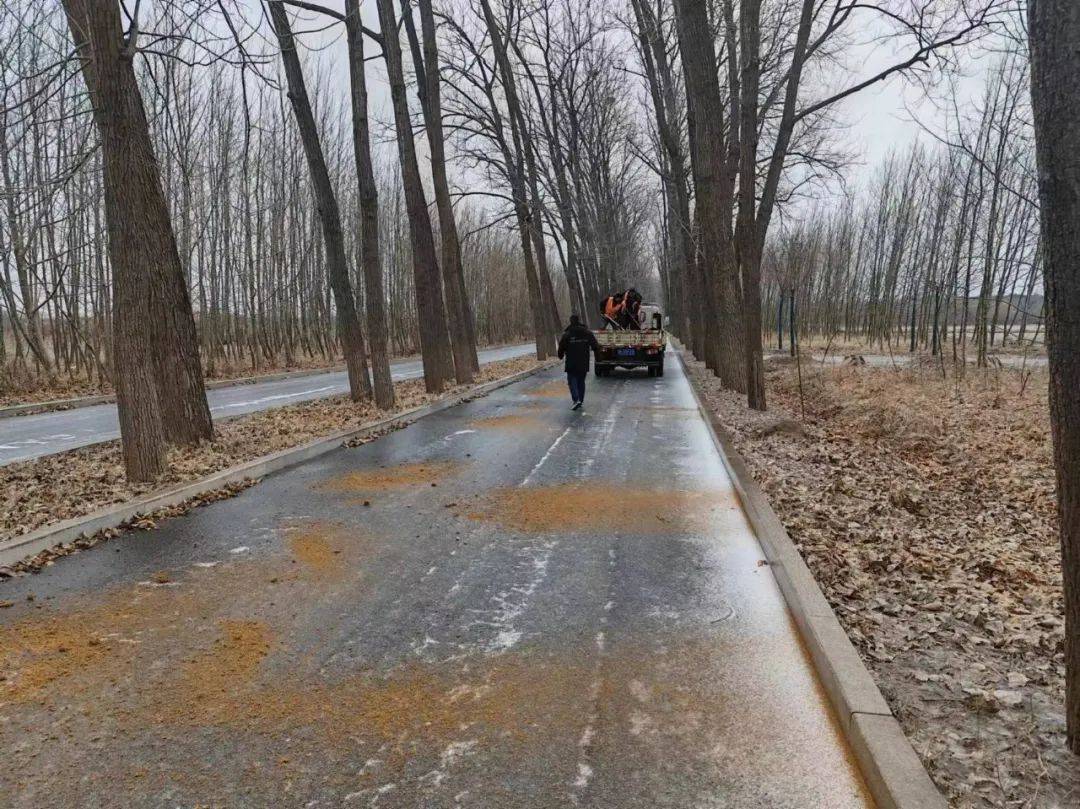 各部门单位昼夜不停,合力攻坚,采取巡回作业方式,出动除雪车、撒防滑沙及融雪剂,重点对主次干道、坡道路面的冰雪进行清理,为群众出行保驾护航。