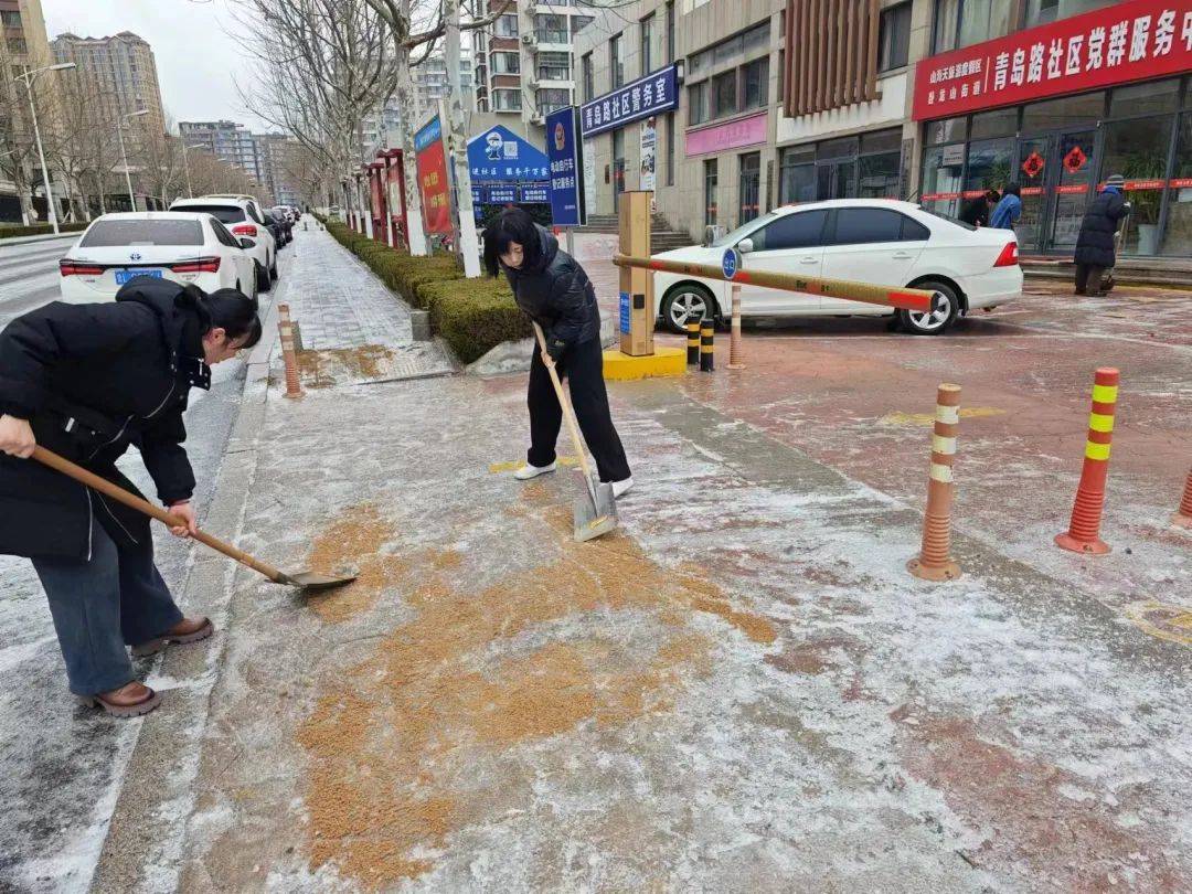 各街道迅速组织干部职工、党员带头开展路面除雪除冰工作,打通道路的“细枝末节”。