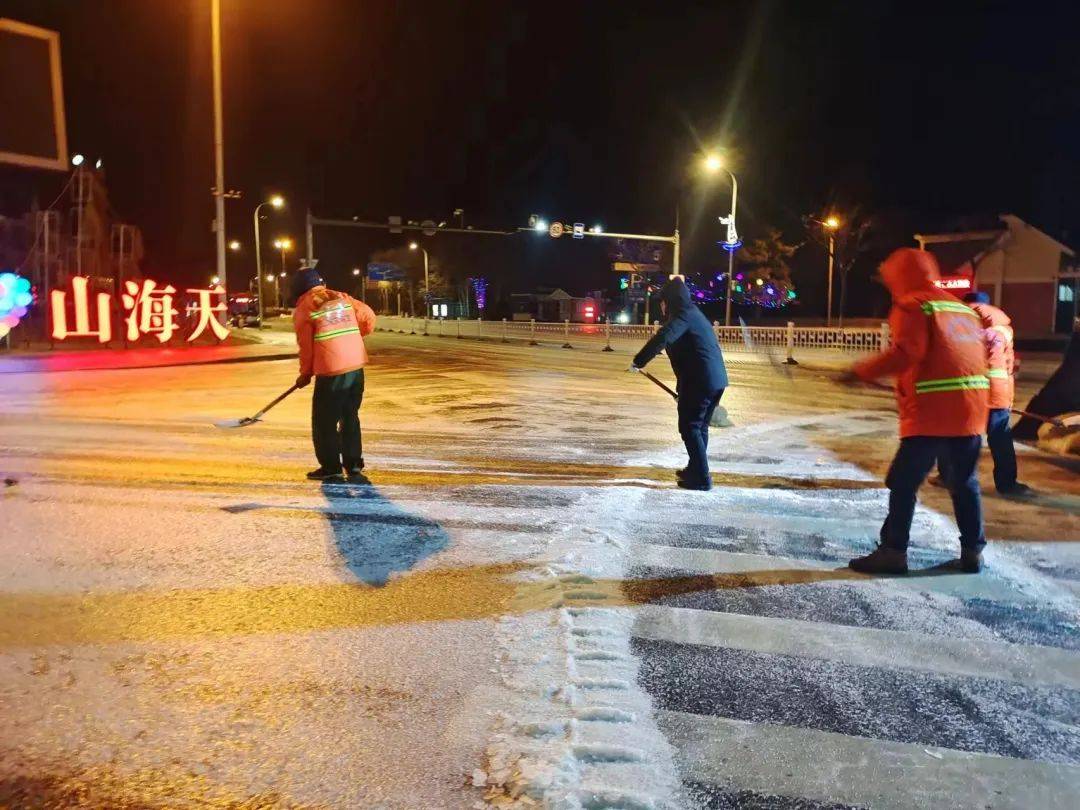 早上八点,山海天各城区主干道保持畅通。 截至21日上午,山海天累计出动除雪突击人员280人,出动撒布机1台、人工撒布融雪剂车辆5台、巡查车2辆、除雪铲车6辆,消耗撒布融雪剂22吨、防滑沙200袋,全区城区和农村主干道已经恢复畅通。 从晨光熹微到月明星稀 他们迅速在全区范围内 助抢险、勇救援 抓应急、守安全 以最快速度为群众打通一条条安全通道 冰雪不停 行动不止 除冰扫雪 山海天仍将全力以赴! |