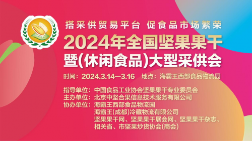 搭采供贸易平台,促食品市场繁荣! 2024年全国坚果果干暨(休闲食品)大型采供会,定于2024年3月14-16日,在成都海霸王西部食品物流园商业区举办,本届采供会首次在我国西部地区举办,是经多年的深入调研、倾听业内及社会各界众多企业的意见与建议,致力于为推进我国西部坚果果干产业的可持续发展,搭采供贸易平台,促食品市场繁荣!