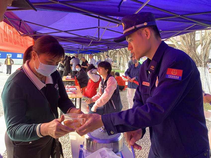 现场不仅可以猜谜语,还能吃到美味的汤圆。“这个汤圆好吃,软软糯糯。”现场消防员将一碗碗热气腾腾的汤圆被送到居民的手中。于此同时,消防员、消防志愿者化身宣讲员,针对元宵节期间放飞孔明灯、祭祀等现象深入讲解其中存在的消防安全隐患,并发放消防安全宣传资料。
