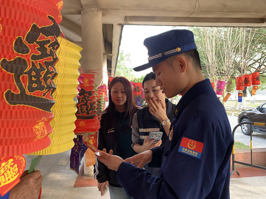 猜灯谜、吃汤圆、品民俗……2月22日,防城港市港口区消防救援大队将“猜灯谜、学消防”趣味游戏融入到社区元宵游园活动,为辖区群众送上元宵消防安全“大礼包”。