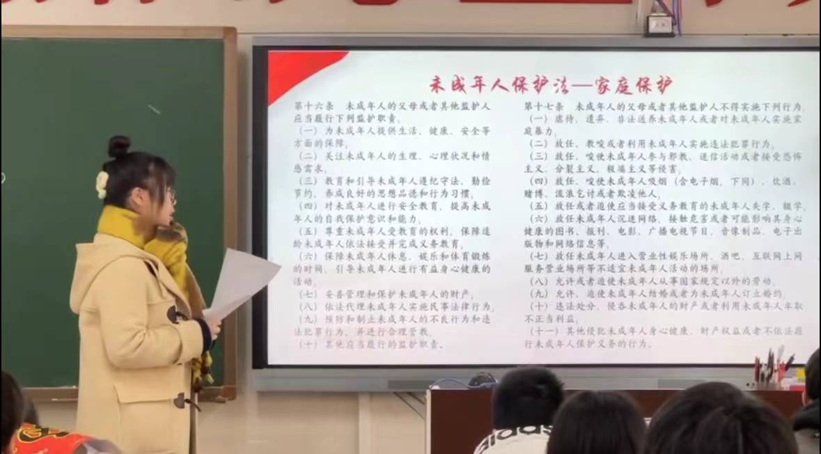 近日,一位来自湖南湘潭大学的大学生陆彦君和一位来自上海海关学院的大学生唐小珺,她们怀着对母校的深厚感情和对法律普及的责任感,利用春节假期以大学生普法志愿者走进高中母校——柳州铁一中学,宣讲未成年人保护法,为在校的学弟学妹们带来了一场生动而富有意义的未成年人保护法的宣讲活动。