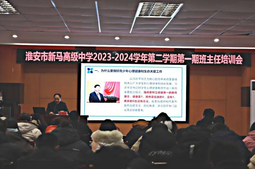 淮安市新马高中非常重视班主任工作,为提高班主任德育和心理健康教育水平 ,新学期开学伊始,学校关工委和学生发展中心即邀请专家来校为60多位班主任作班级管理和心理健康教育专题讲座。 2月21日下午,淮安市少工委副主任、市中小学德育专业委员会秘书长陈国兵老师来校为班主任们上了生动一课。