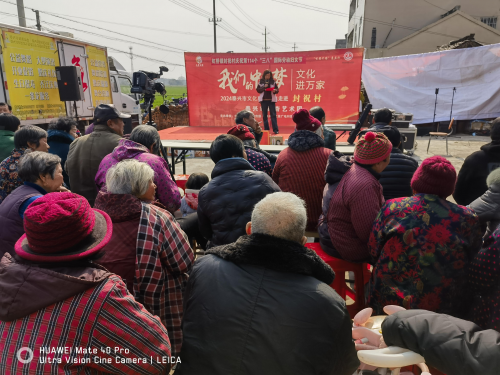 泰兴市银杏艺术团表演的舞蹈《开门红》、黄梅戏《到底人间欢乐多》、彩妆锡剧《珍珠塔》选段《庵会》、宣传环保情景剧《绿水青山就是金山银山》、彩妆越剧《梁祝》选段《记得那年乔装扮》、舞蹈《我的祖国美丽的家园》等节目为村民朋友送来文化大餐,赢得了观众的阵阵掌声。 现场还举行了有奖猜谜活动,围绕“三八”国际劳动妇女节、乡风文明建设、电动自行车安全使用等方面知识,主持人现场提问,广大村民踊跃举手,积极抢答。让老百姓在快乐参与过程中,学习到很多知识,宣传效果明显。