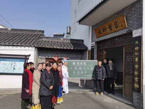 城乡互补相融合,革命老区展新颜 横板桥村是天姥山门户与古代驿站,又是未来乡村建设的重点村,有着光荣的革命传统,被命名为省首批“红色根脉”强基示范村,列为当地红色教育基地。随着天姥山李白梦境的一一重现,该村古色古香又焕发新颜,吸引了大批重走唐诗路、神游天姥山的游客造访与逗留,为该村的经济发展注入了活力。 这次射雕艺术团送戏下乡,与接受红色教育相结合,是与横板桥村的良性互动。如今,在潘震故居与横板桥村支部旧址旁,建立了天姥山革命纪念馆,射雕艺术团的团员们,安排了先参观后演出。横板桥村现任书记王伯强说:“我们将不负先辈期望,以红色为引领,充分利用好天姥山门户遗留下来的珍贵资源,借天姥山李白梦境成实景的东风,建设好百姓共富的未来乡村。”最后他邀请大家今后再来,因为这里的故事古迹太多了,一时半会说不尽也看不过来。