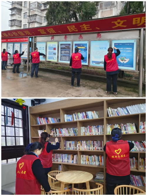医药高新区支行团支部走进海陵区城西街道闸南社区开展志愿者服务活动。帮助社区工作者整理书架、清扫宣传栏。