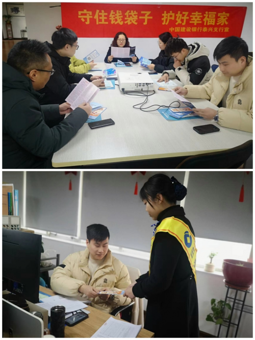 兴化支行志愿服务队深入社区,邀请兴化市环卫处职工走进建行开展金融知识教育宣传活动,提升金融消费者金融素养和风险防范意识。