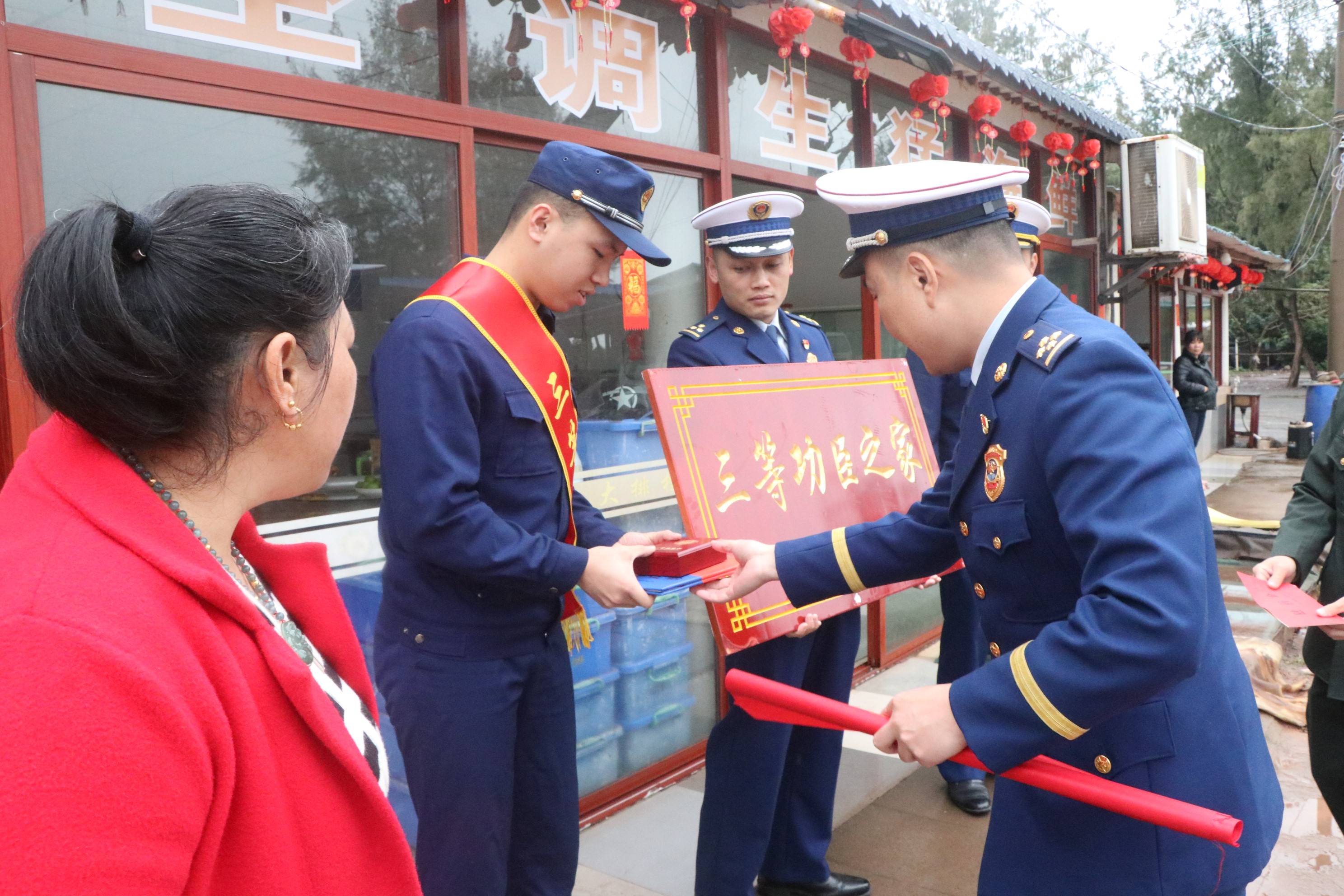 敲锣打鼓挂横幅、乡村邻里齐贺喜、争先恐后送祝福,在防城区江山镇白龙村、峒中镇和平村,许多村民群众聚集着见证“送奖到家”这一隆重时刻。活动中,参加送奖到家的各级领导对受奖的陈凤辉、江家瑞两名指战员在工作中顽强拼搏、爱岗敬业、奋勇争先的优良品质给予高度评价,对家属长期以来对消防工作和队伍建设的默默支持和辛勤付出表示感谢,同时勉励立功受奖人员珍惜荣誉,继续在工作中锤炼思想、提升本领,以更加高昂的斗志、更加务实的工作作风,在新征程中再创新佳绩。面对“送奖到家”的各级领导和前来祝贺的街坊邻居,立功受奖家属倍感荣耀自豪,坚定表示将继续当好指战员的坚强后盾,以实实在在的行动支持消防工作,为防城港市消防救援事业发展作出新的更大贡献。 此次开展“送奖到家”活动,既是防城港市消防救援支队党委贯彻落实奖励待遇的暖心之举,又是增进家属对消防救援事业理解支持的务实之措,更是思想政治工作的增效之策,真正把组织的关怀与鼓励送到了受奖对象及家属的心坎里,切实营造了崇尚荣誉、争当先进、奋发作为的浓厚氛围。 荣誉催人奋进、榜样激励前行。下一步,防城港市消防救援支队将持续加大典型培树力度,深化典型培树成效,让指战员切实触摸到荣誉的分量,感受到荣誉的温度,为先进典型厚植成长沃土。