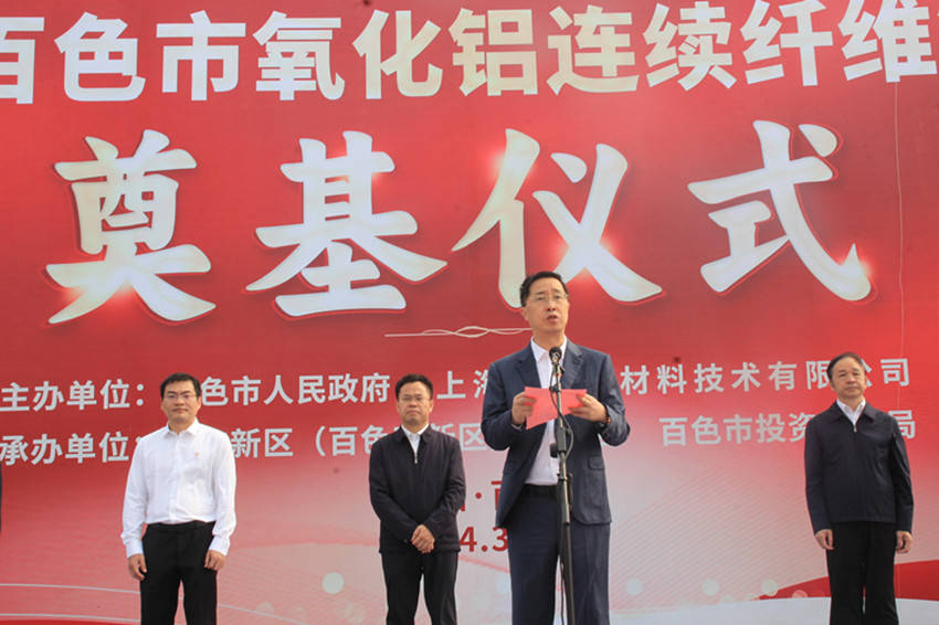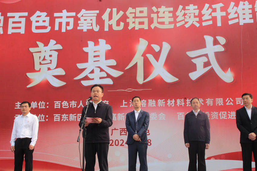葛国科在致辞时指出,近年来,百色市围绕主导产业强链补链延链,致力推动产业高端化、智能化、绿色化发展,加快发展新质生产力。上海榕融百色市氧化铝连续纤维制品项目的奠基开工,标志着双方合作迈入了一个崭新的阶段,也是我市培育壮大战略性新兴产业的重要里程碑。为了确保项目的顺利推进,百色市委、市政府将坚持“项目为王”理念,不断优化提升营商环境,为企业在百色投资发展创造更多有利条件。同时,市直各有关部门将强化全链条服务、全流程跟进、全要素保障,确保项目高效推进、早日投产。